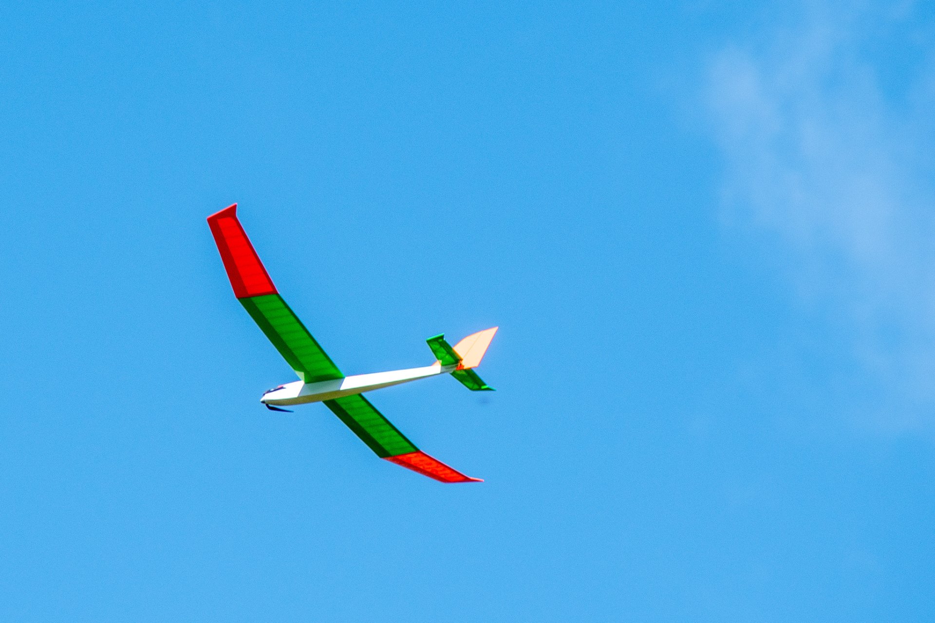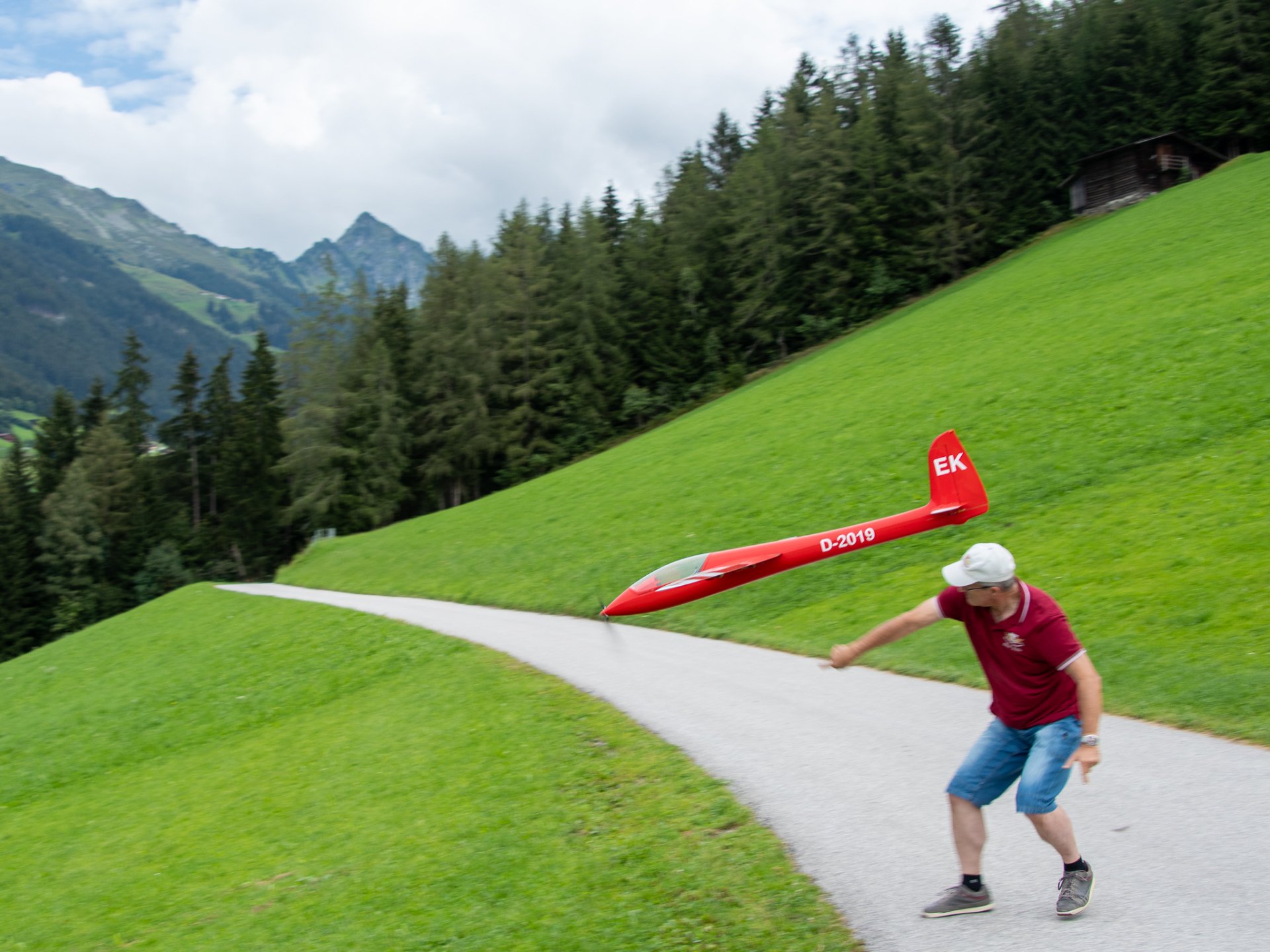 Zuerst im Aufwind hochkurbeln. Dann „tief von oben“ (mindestens 400 m) und anschließend Speed- und Kunstflug!